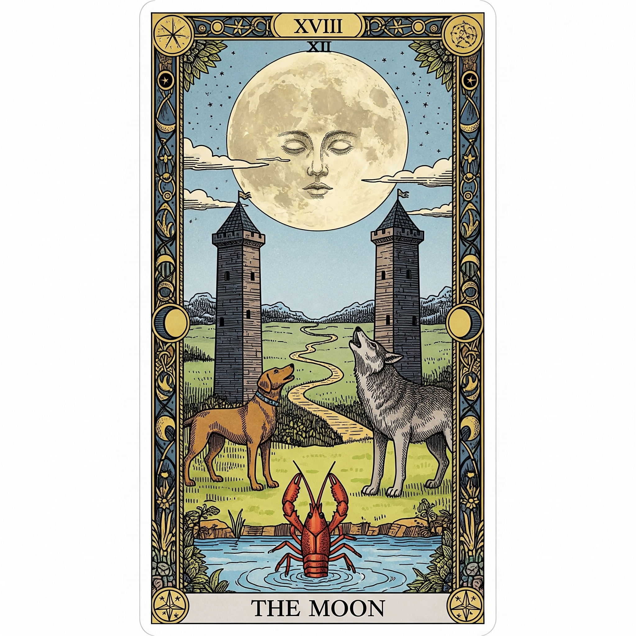 더 문 카드는 심리적인 불안, 잠재의식의 혼란, 감정의 기복을 의미합니다.
