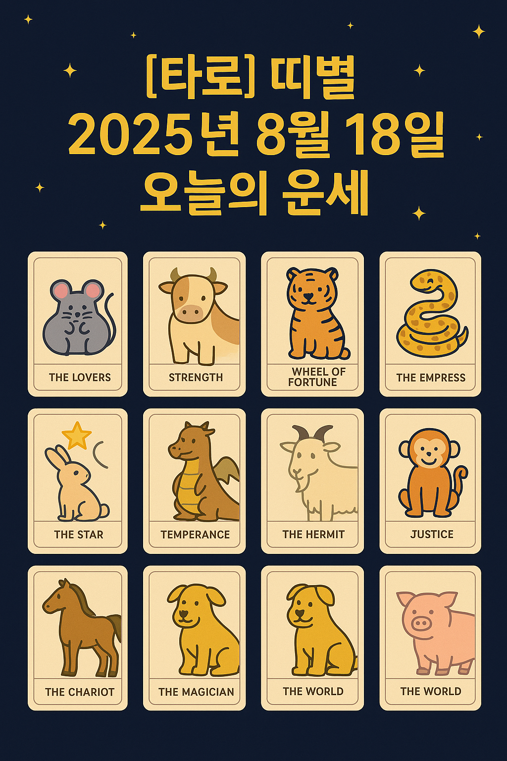 [타로] 띠별 2025년 8월 18일 오늘의 운세