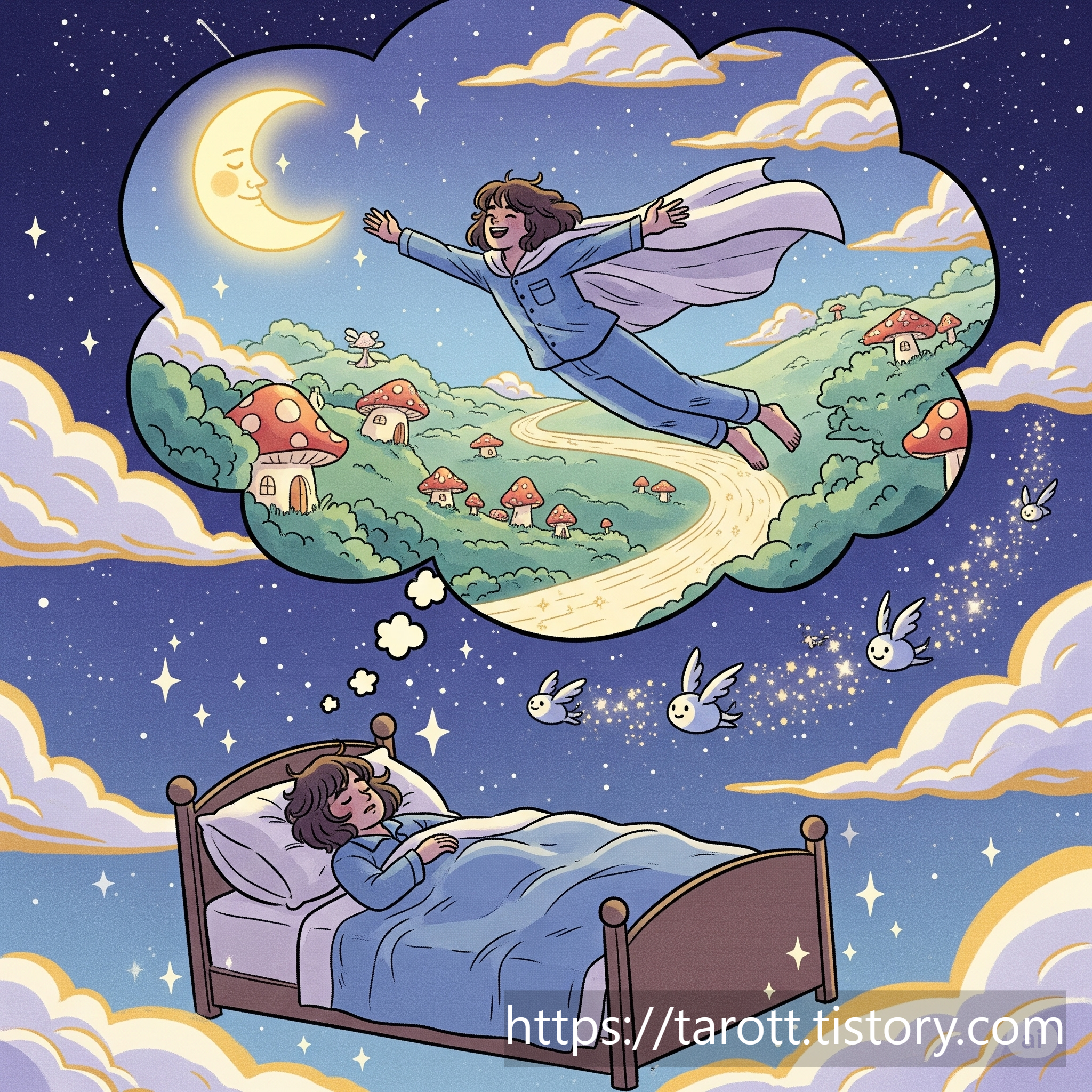 - 은은한 달빛 아래 날아다니는 꿈은 예술적 감각, 창의력, 직관을 상징합니다.