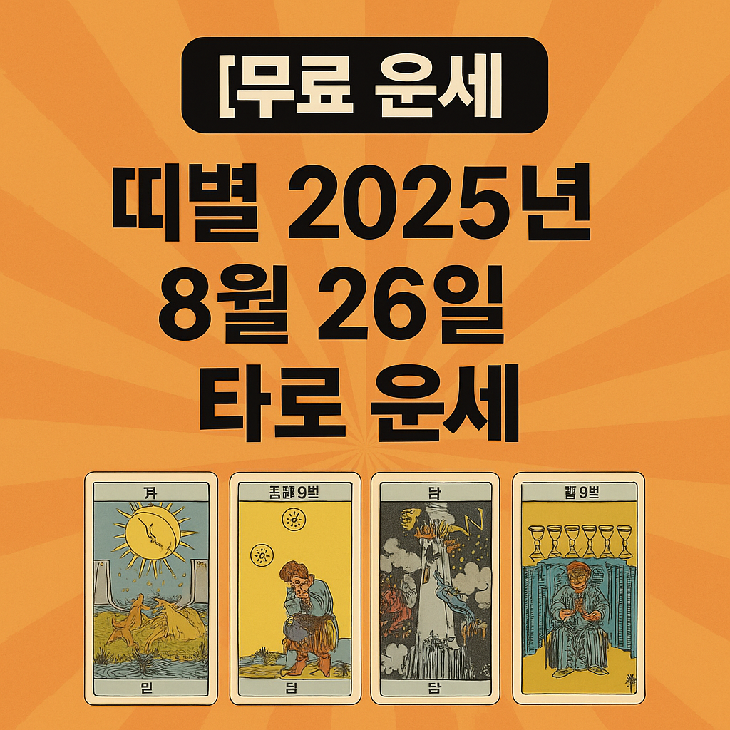 [무료 운세] 띠별 2025년 8월 26일 타로 운세