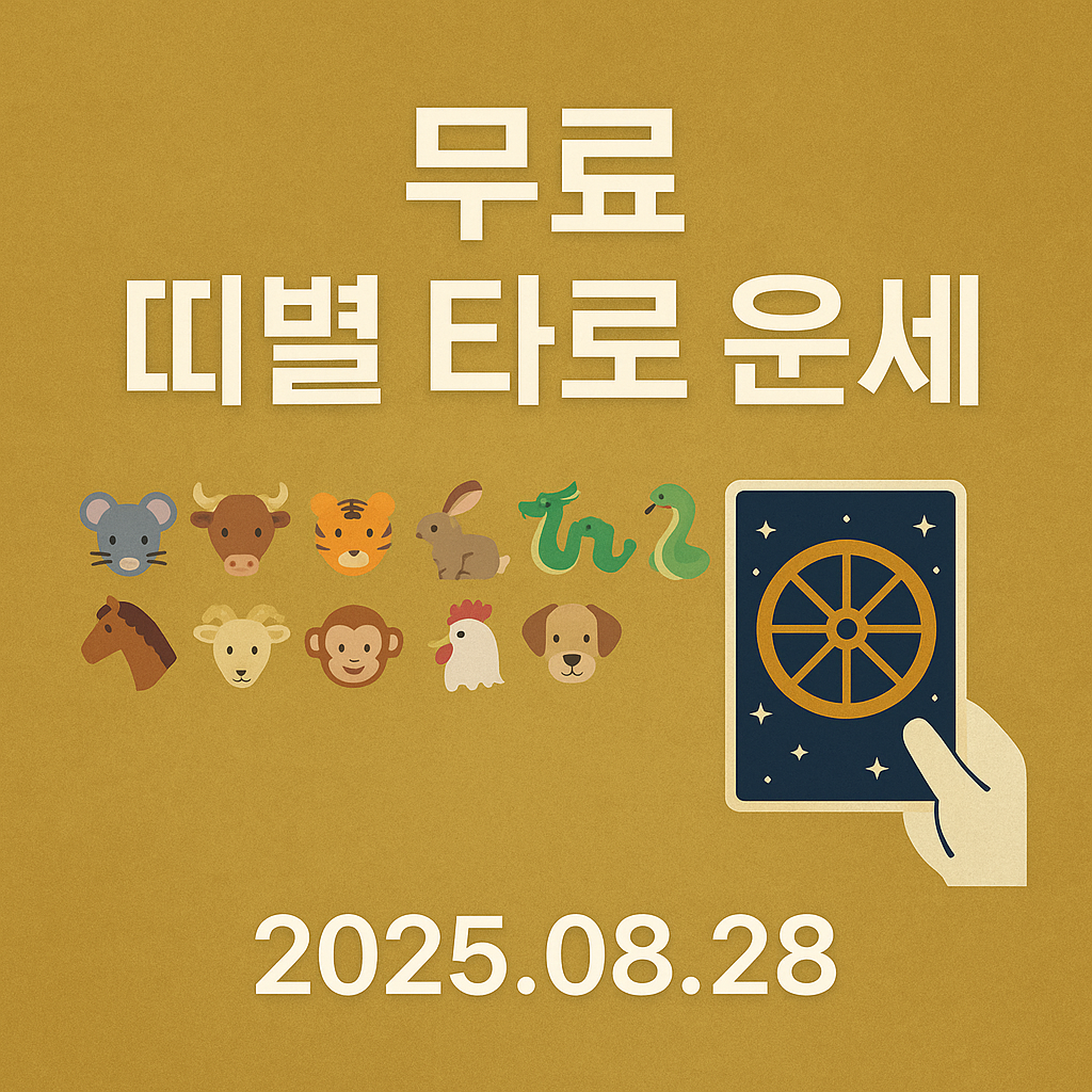 [무료 운세] 띠별 2025년 8월 28일 타로 운세