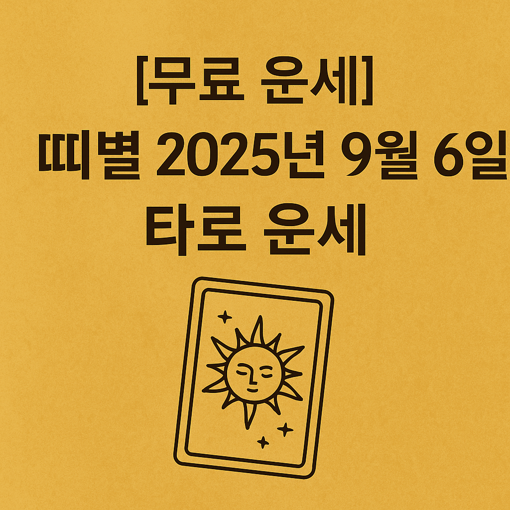 2025년 9월 6일은 변화와 성취가 교차하는 날입니다. 어떤 띠는 기회의 문이 활짝 열리고, 어떤 띠는 불확실성 속에서 신중해야 합니다. 오늘 하루를 어떻게 준비할지 타로카드의 메시지를 함께 보겠습니다.