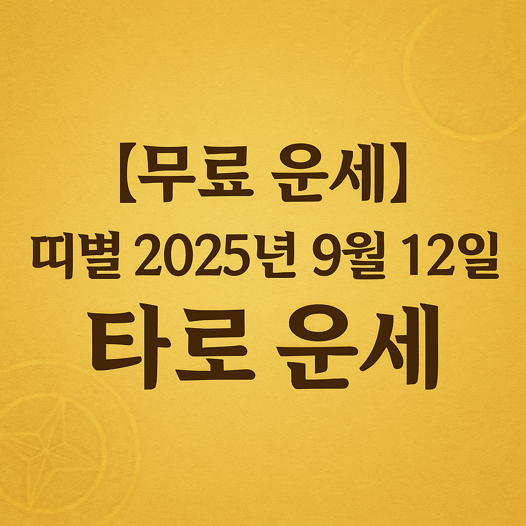 2025년 9월 12일은 새로운 기회와 주의가 함께하는 날입니다. 오늘의 타로카드 메시지를 통해 각 띠별 하루의 흐름을 확인해보세요.